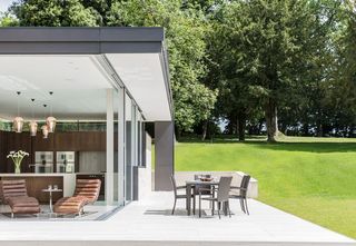 Broughton House es una mansión georgiana ubicada en 62 acres de zona verde. Crear una extensión contemporánea en un edificio catalogado como Grado II en un área del Cinturón verde designada como Área de destacada belleza natural siempre iba a ser un desafío. El objetivo era tener una estructura de vidrio que pareciera estar casi flotando, sostenida por una sola viga. Con áreas de vidrio tan grandes, era importante aprovechar el calor solar y el aumento térmico, particularmente durante las épocas de poco sol de invierno. Los arquitectos querían una solución de sombreado que ofreciera rendimiento pero que también cambiara el carácter del espacio interior, por lo que seleccionaron Silent Gliss.