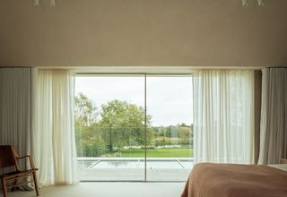 Para complementar la estética serena y natural de la casa y su amplio acristalamiento, los arquitectos prescribieron sistemas motorizados SG 5600. Estos se empotraron en el techo, permitiendo que las cortinas parezcan caer en cascada desde el techo, realzando el diseño minimalista y manteniendo las líneas arquitectónicas limpias.