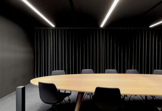La sofisticación de las salas de conferencias se complementa con nuestros rieles de cortina negros que combinan perfectamente con el interior.