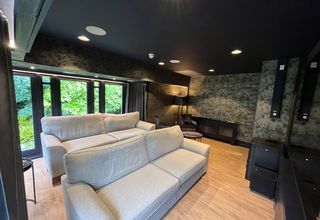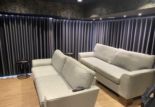 The cinema room features a 90” screen, advanced audio-visual equipment and was a culmination of six months of meticulous planning and collaboration. Silent Gliss contributed by installing three black electric curtain tracks SG 5600 with our Smart motors and components required to integrate with Control4. Additionally, we provided Wave curtains with Deep fabric and laser-cut finished hems.