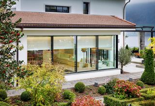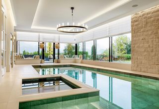 La casa también cuenta con una amplia zona de bienestar y spa con piscina cubierta, sauna y gimnasio. Siete sistemas de estores SG 2360 se pueden accionar individualmente y proporcionan sombra en la zona de la piscina. Los sistemas de estores se integran a la perfección en la estancia gracias a la tecnología oculta tras un falso techo.