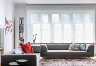 La villa señorial está situada en la ladera de una colina con una hermosa vista al verde y al casco antiguo de Berna. Las elegantes persianas romanas combinan perfectamente con el interior de las luminosas habitaciones. El tejido Colorama 1 permite una vista discreta hacia el exterior, crea intimidad y regula la luz del sol. En los dormitorios, las cortinas Wave con tejido Leviso pueden correrse para oscurecer la habitación. El sueño confortable está garantizado con los deslizadores 2C combinados con Silent Track.