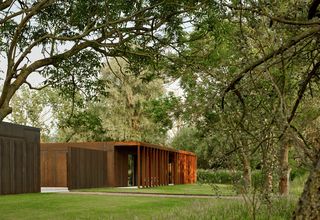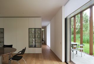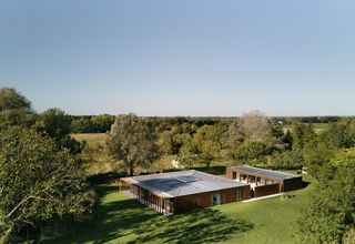 Située à proximité d'une réserve naturelle, la maison est conçue comme une forme sculpturale unique, inspirée de la rotonde de la Villa Palladio et des sculptures paysagères de Richard Serra. L'enveloppe du bâtiment est orientée selon les quatre points cardinaux. Une colonnade extérieure et une loggia se trouvent sur les façades sud-est et sud-ouest.